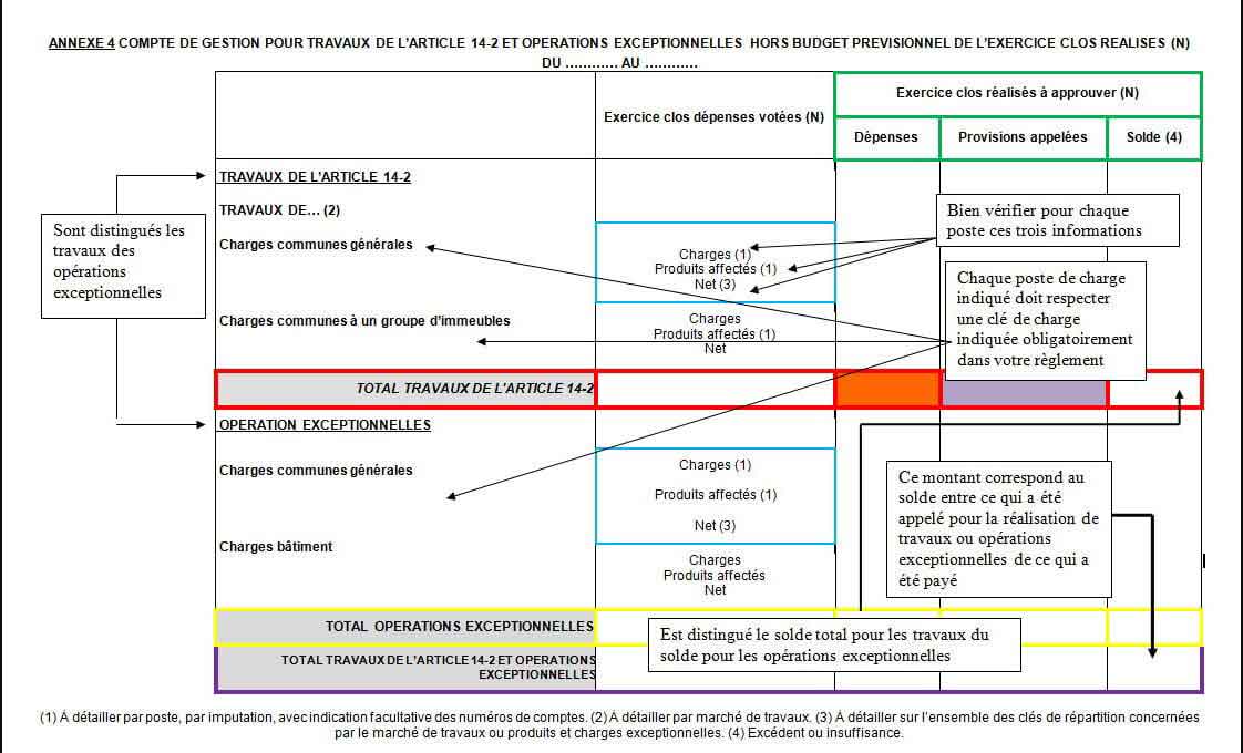 🔍 ANNEXE 4 COMPTE DE GESTION POUR TRAVAUX DE L'ARTICLE 14-2 ET OPÉRATIONS EXCEPTIONNELLES HORS BUDGET PRÉVISIONNEL DE L'EXERCICE CLOS RÉALISÉ